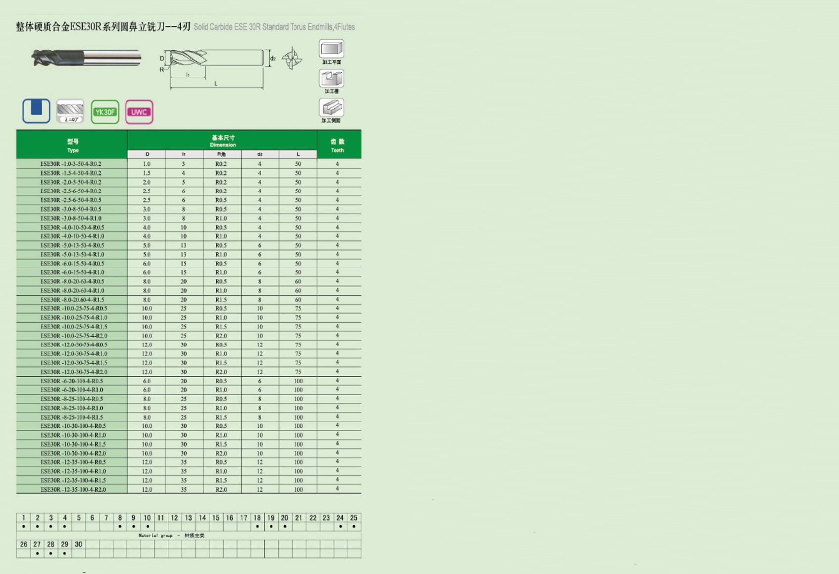 ESE 30R系列圆鼻立铣刀--2刃